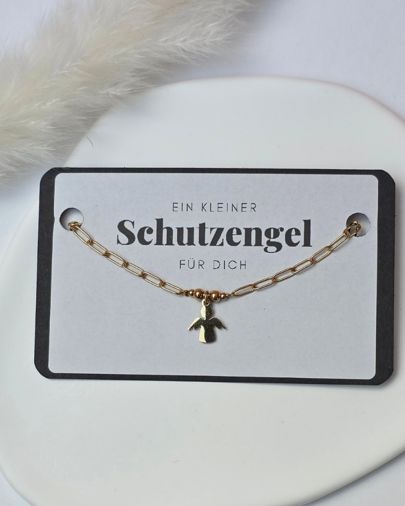 Ein kleiner Engelanhänger rundet das Design ab und gibt dem Piece seine besondere Bedeutung – ein dezentes Symbol für Schutz, Nähe und dieses gute Gefühl, begleitet zu sein.
